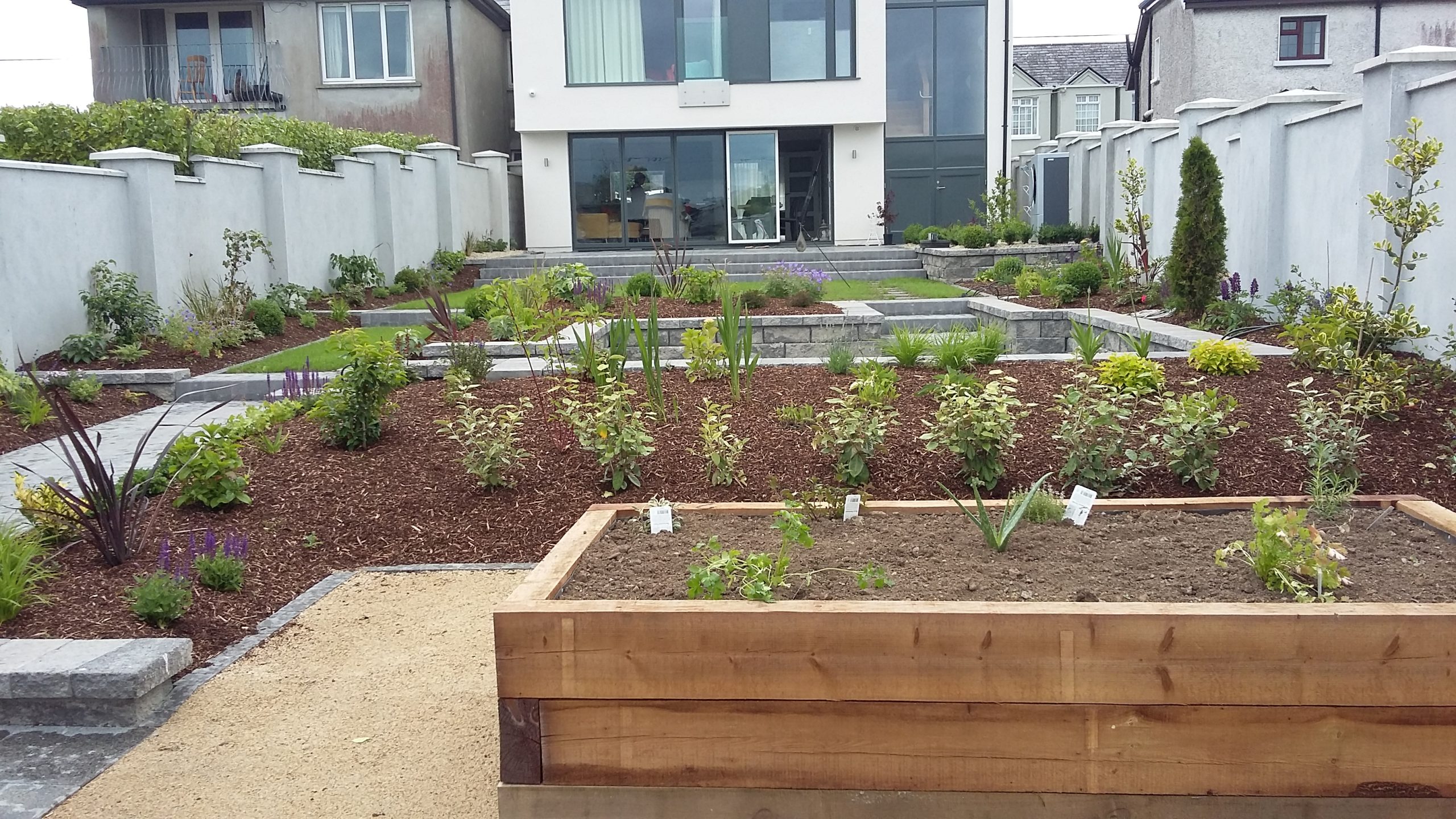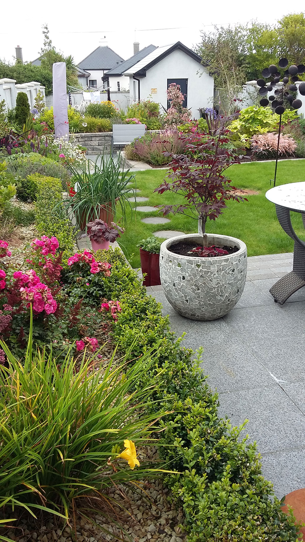This renovated semi detached home in Galway needed a garden that lived up to its fresh, modern interior. The original rear space fell sharply away from the house, creating awkward level changes and very little room for relaxing or gathering. The clients wanted a garden that made outdoor living easy, brought plenty of colour through the seasons, and stayed low maintenance. They also wanted space for a modest kitchen garden and a Cordyline planted as a tribute to their mother.