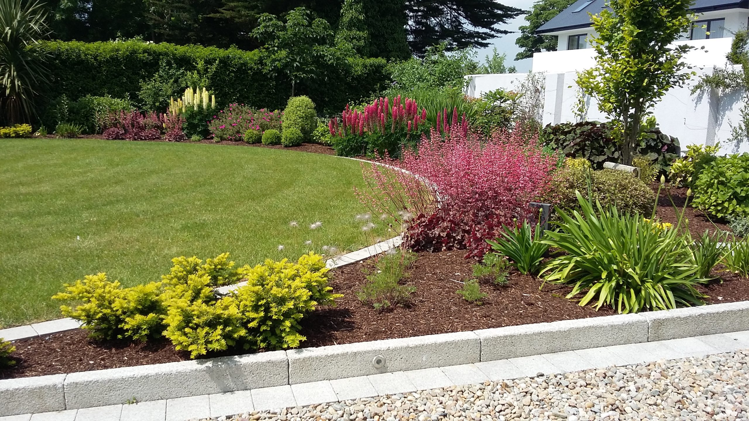 This project involved a large coastal city garden exposed to a busy road, the sea air, and long open views across Galway Bay to the Burren. The brief was deceptively demanding: create a garden that feels calm rather than cluttered, works for outdoor living and entertaining, protects privacy and security, and still frames — not competes with — the natural views. Practical access and circulation were also essential: easy turning and parking to the north, and secure pedestrian access to the south.